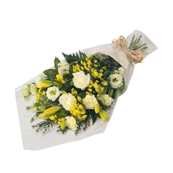 • This bouquet is gift wrapped in cellophane/paper with a natural raffia or similar bow