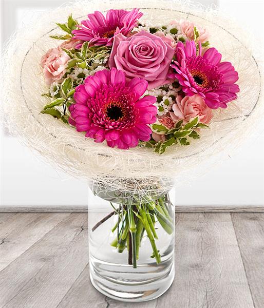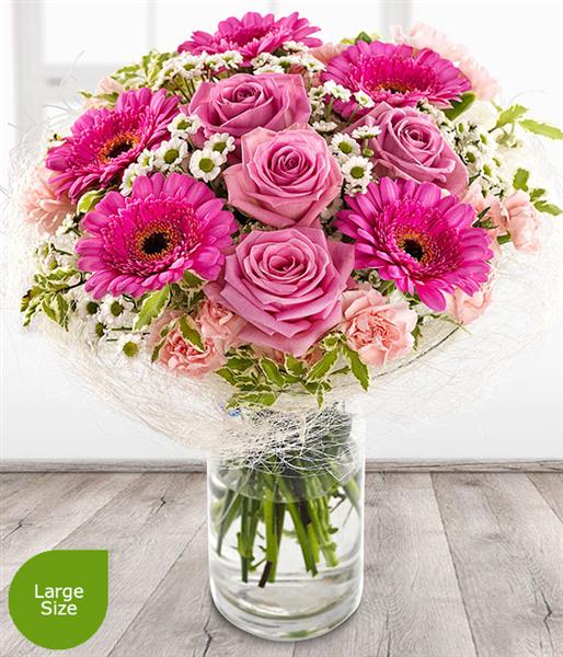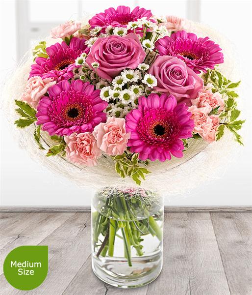 If it has to be pink then this is the Mother's Day Bouquet for you. An incredibly gorgeous combination of pink Roses, Germini and Spray Carnations married with a sprinkling of white Chrysanthemums.