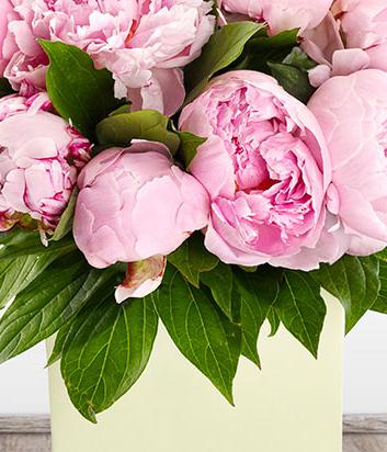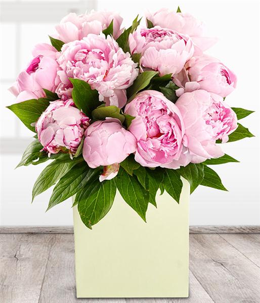 Simply perfect pink peonies in an aqua pack gift bag ready to display.